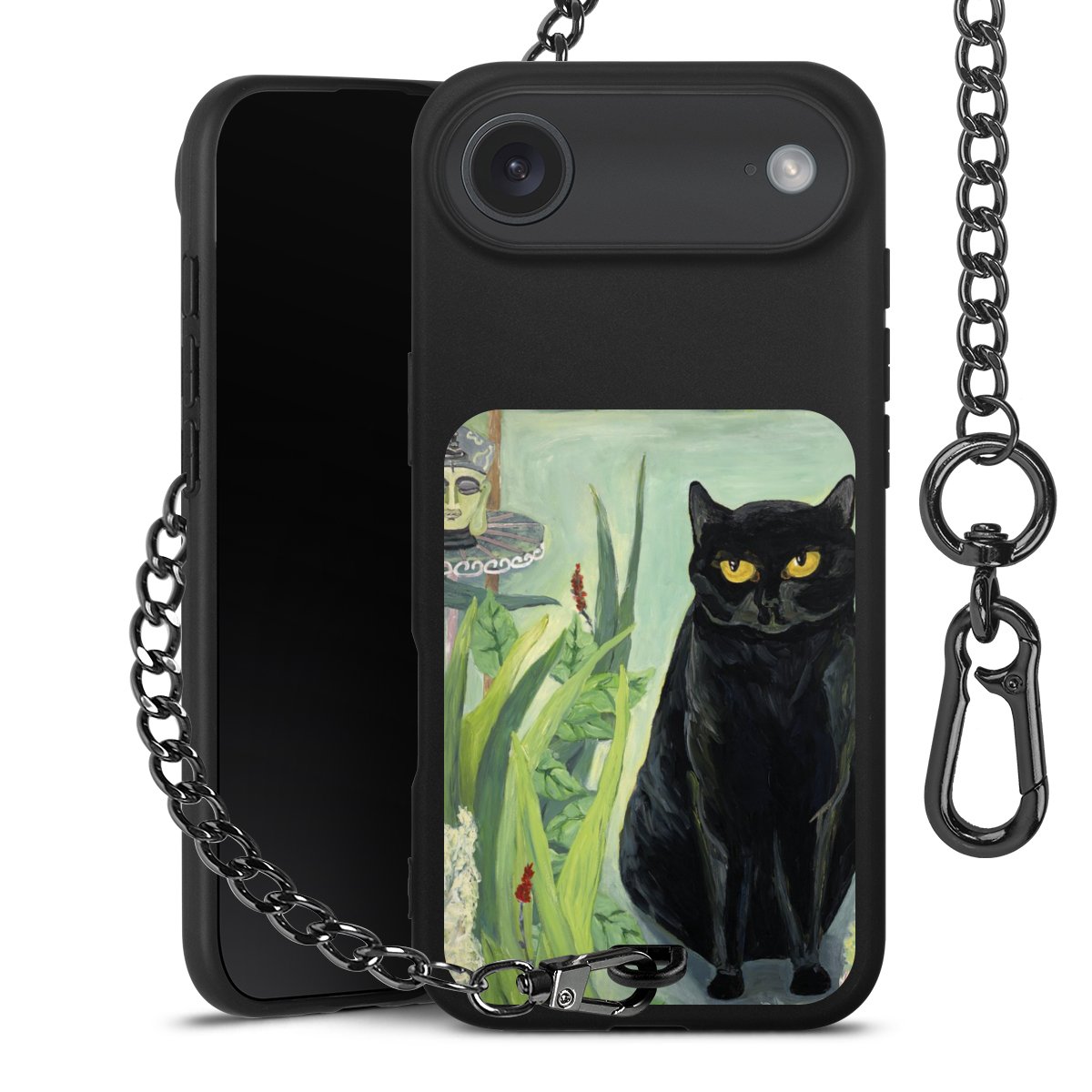 - Mattschwarze Handyhülle mit Metallkette