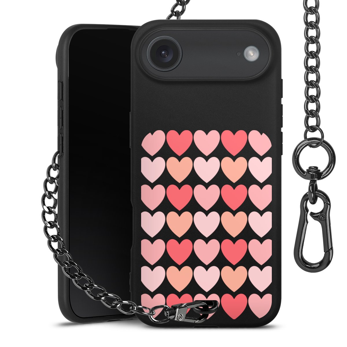 • Mattschwarze Handyhülle mit Metallkette