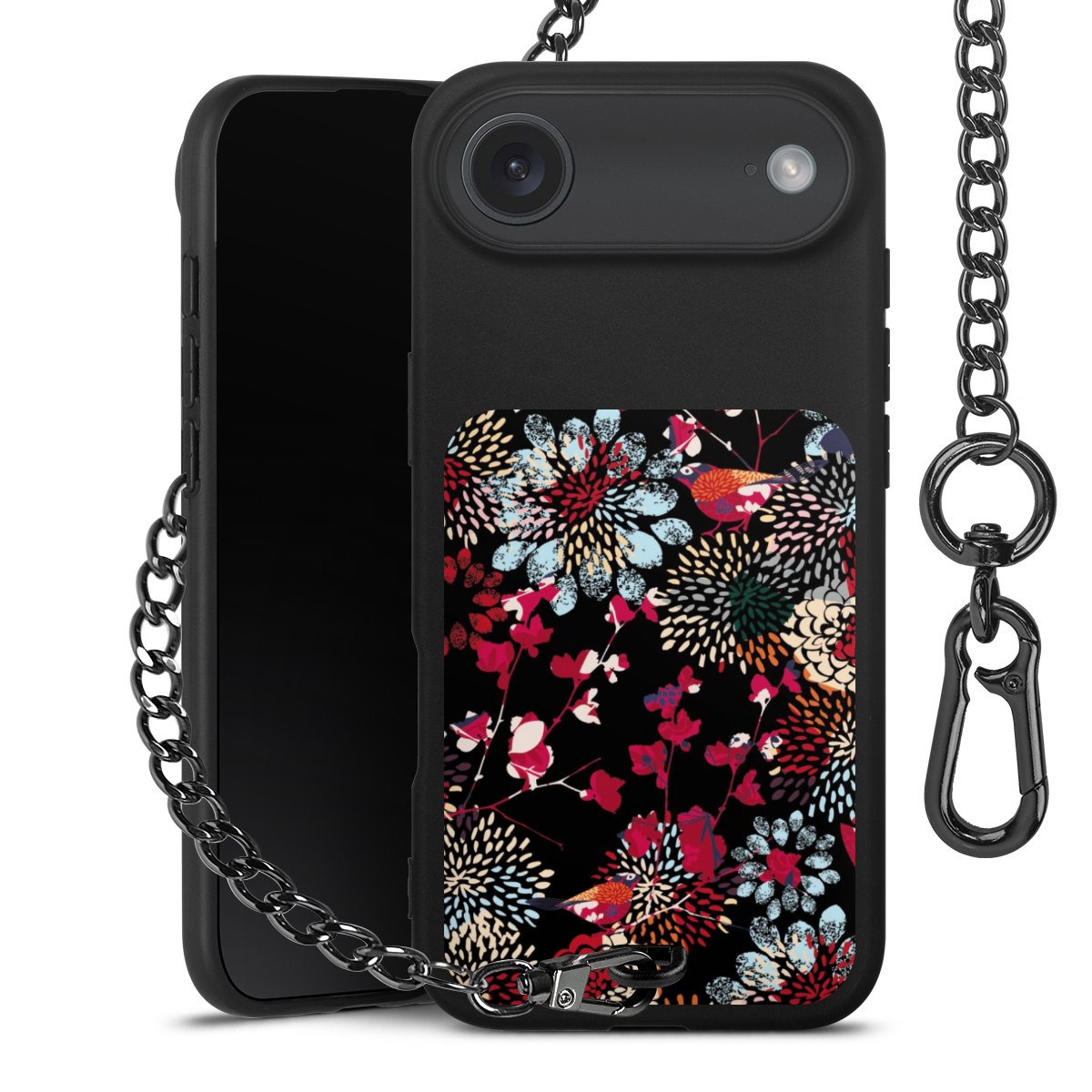 - Mattschwarze Handyhülle mit Metallkette