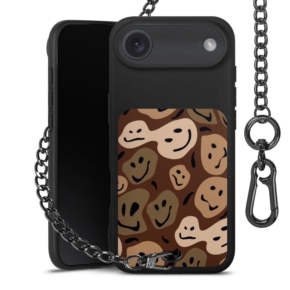 - Mattschwarze Handyhülle mit Metallkette