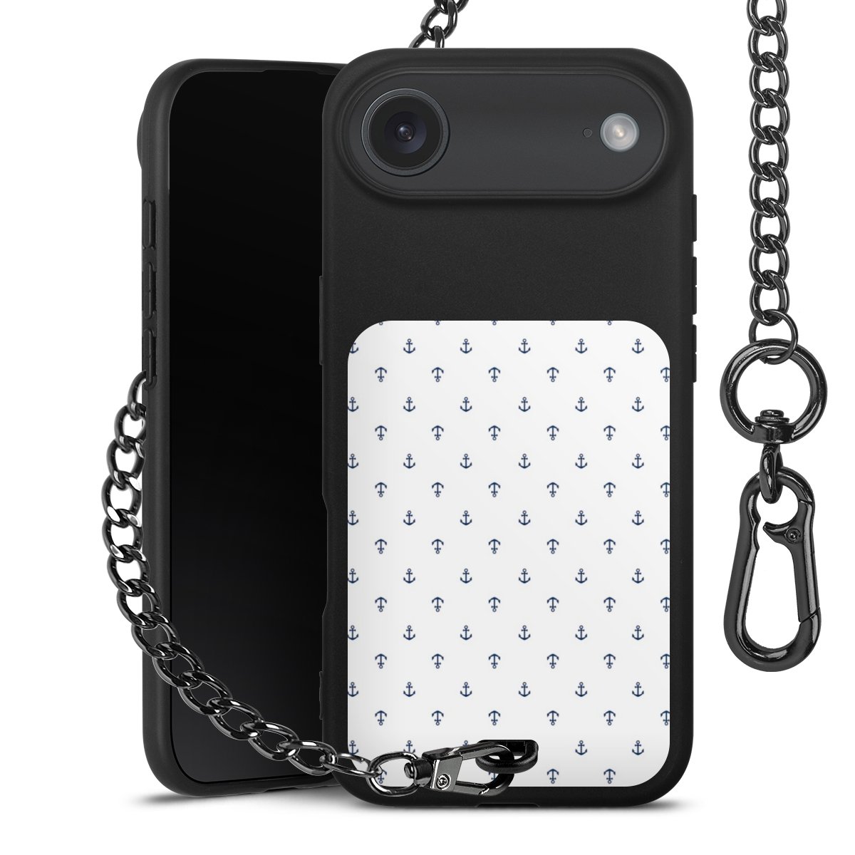 - Mattschwarze Handyhülle mit Metallkette