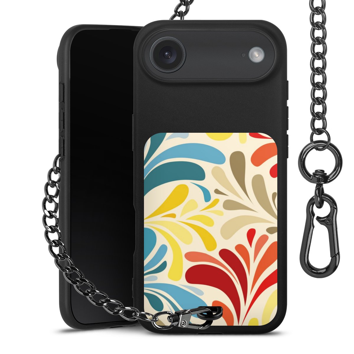 - Mattschwarze Handyhülle mit Metallkette