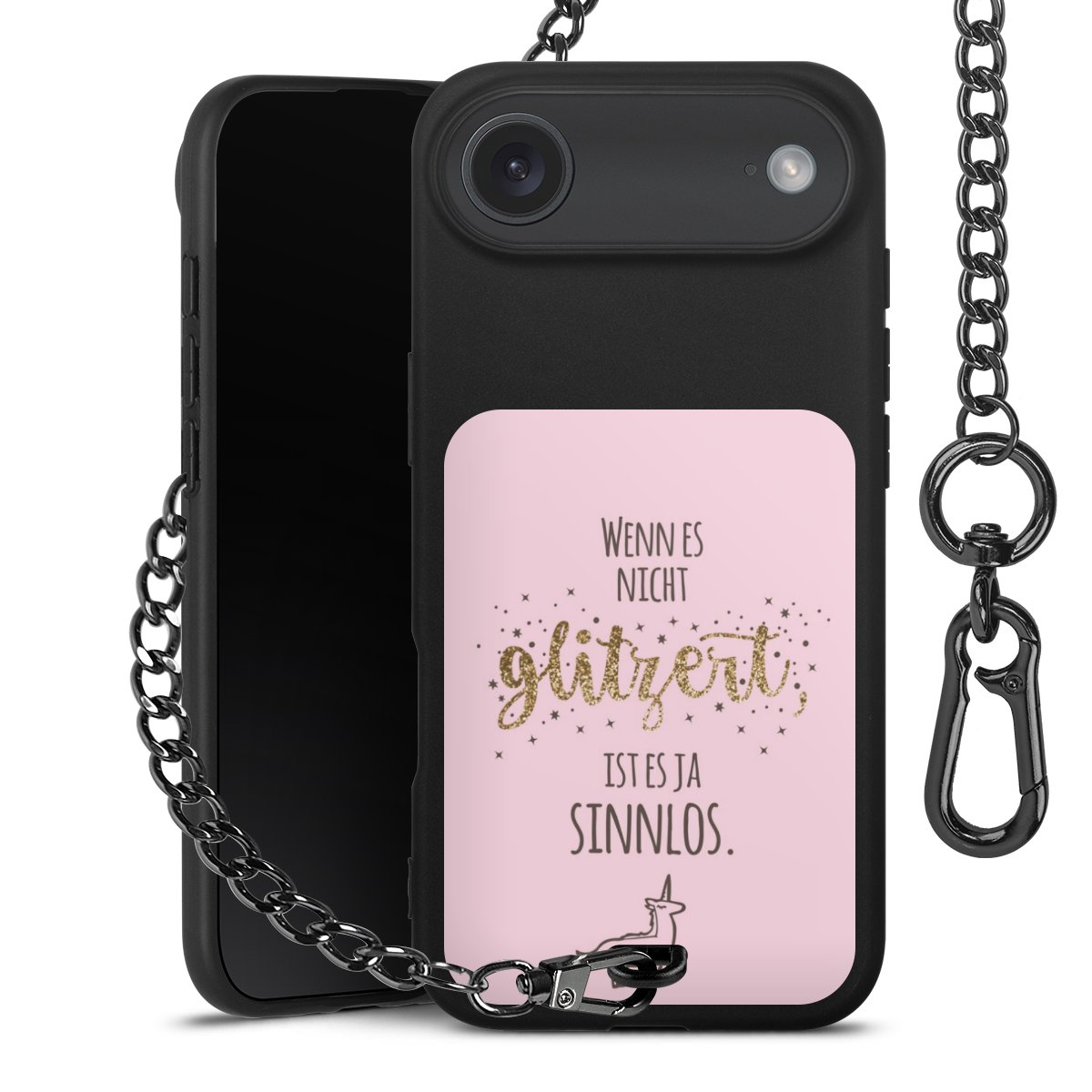 • Mattschwarze Handyhülle mit Metallkette