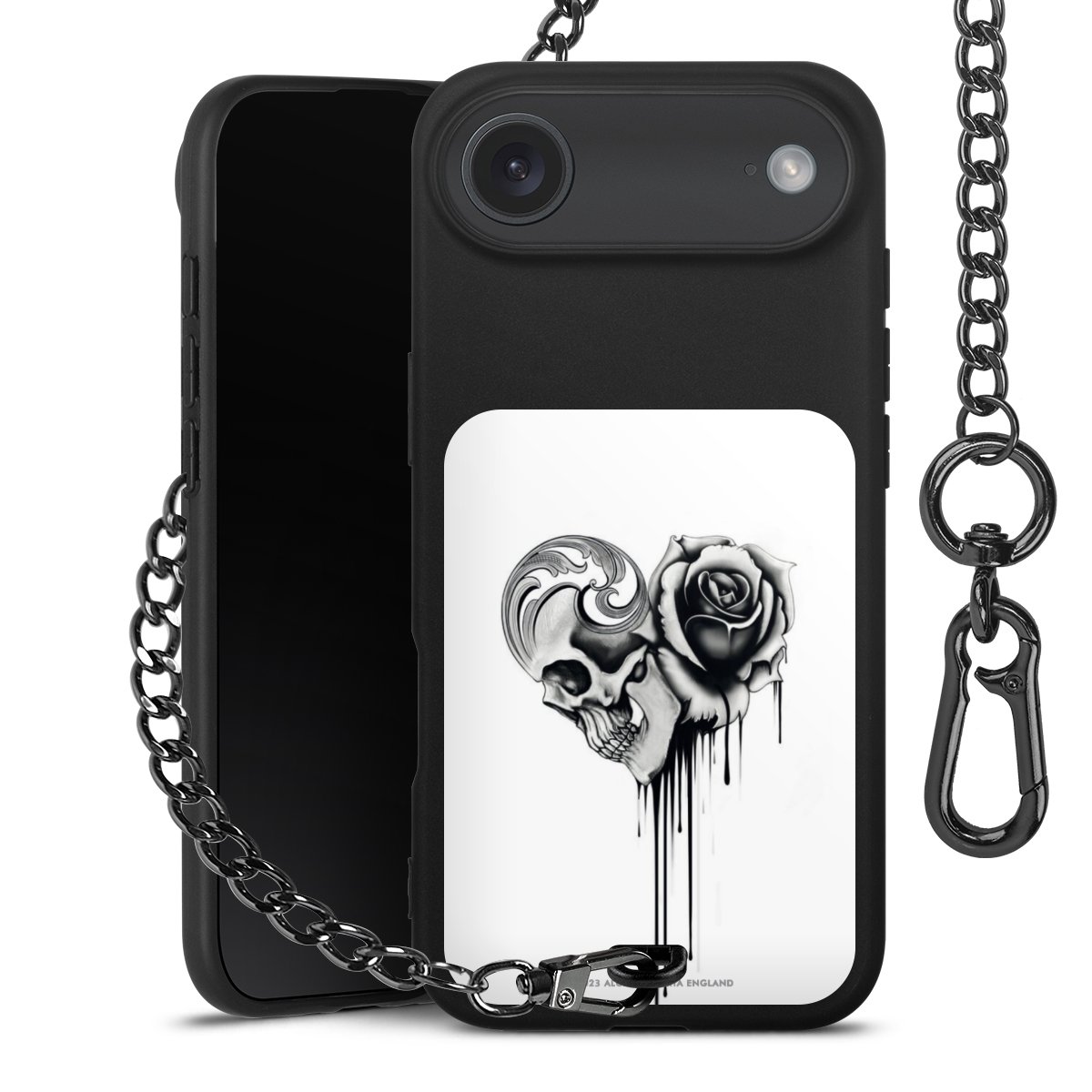 • Mattschwarze Handyhülle mit Metallkette