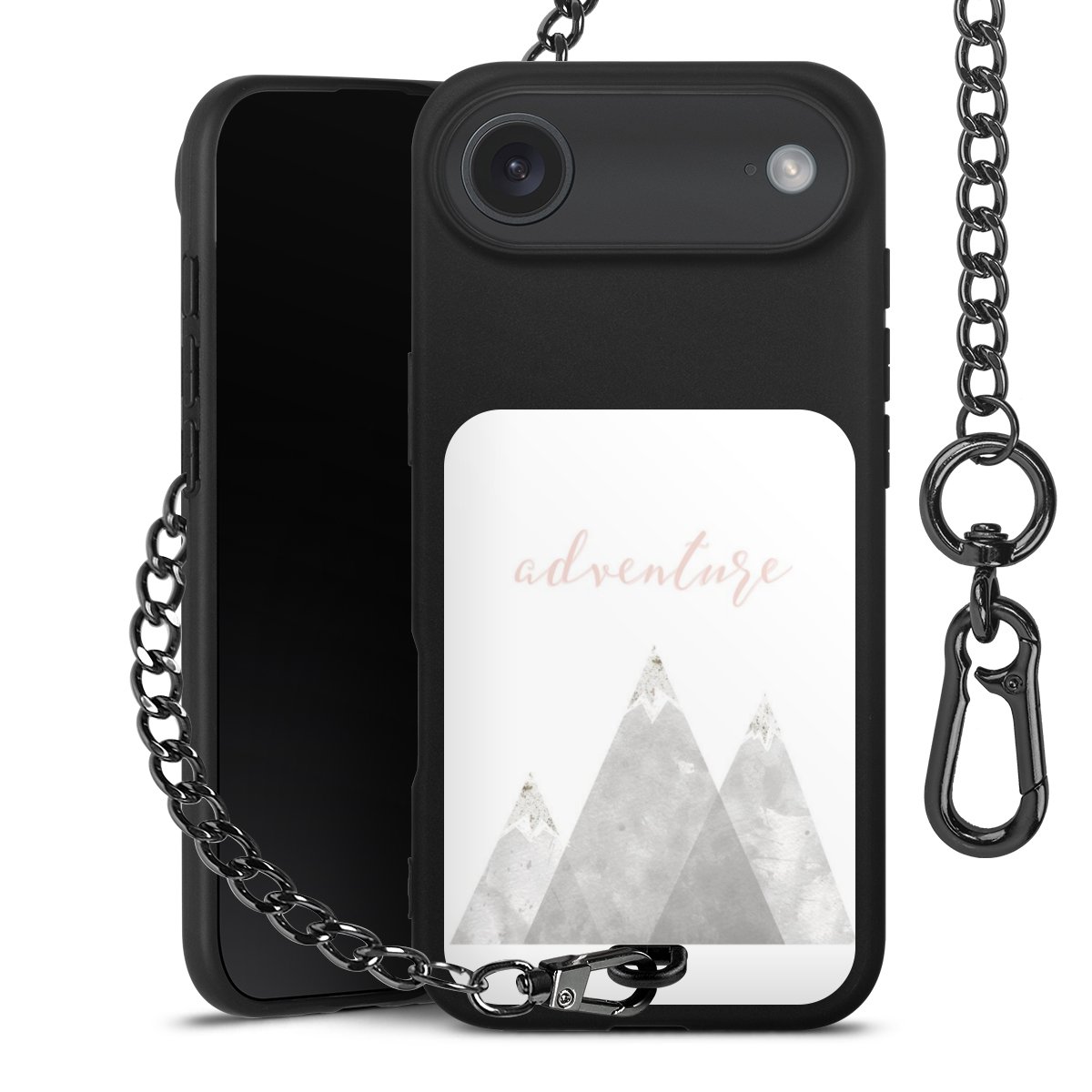 • Mattschwarze Handyhülle mit Metallkette