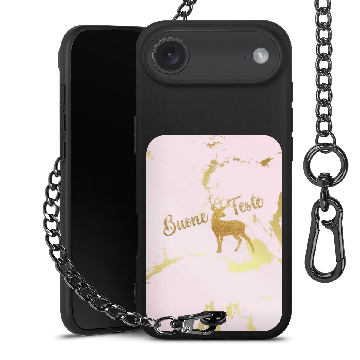 • Mattschwarze Handyhülle mit Metallkette