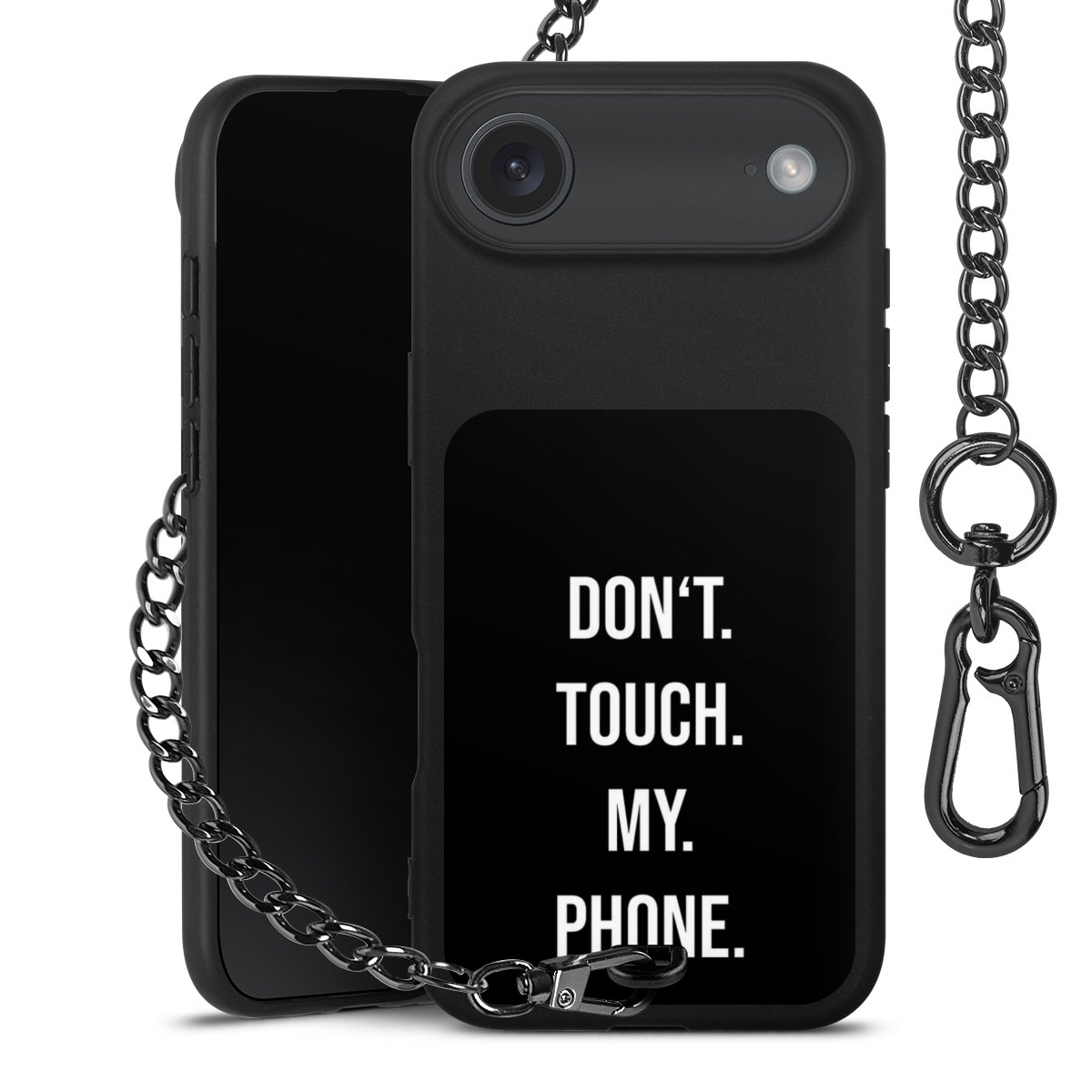 - Mattschwarze Handyhülle mit Metallkette