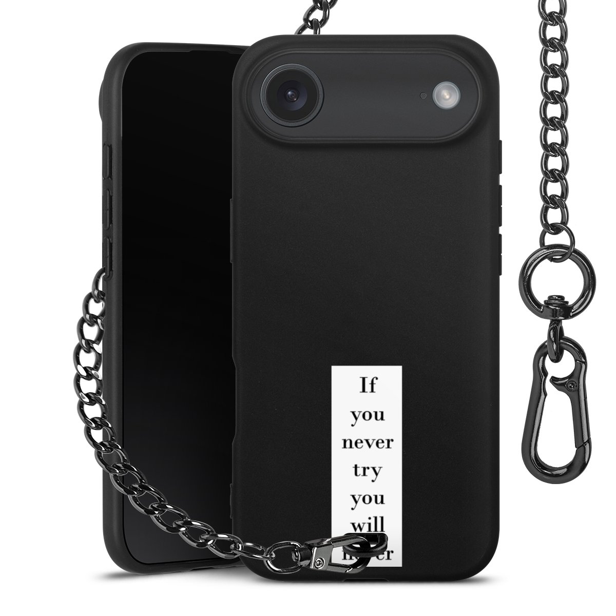 - Mattschwarze Handyhülle mit Metallkette