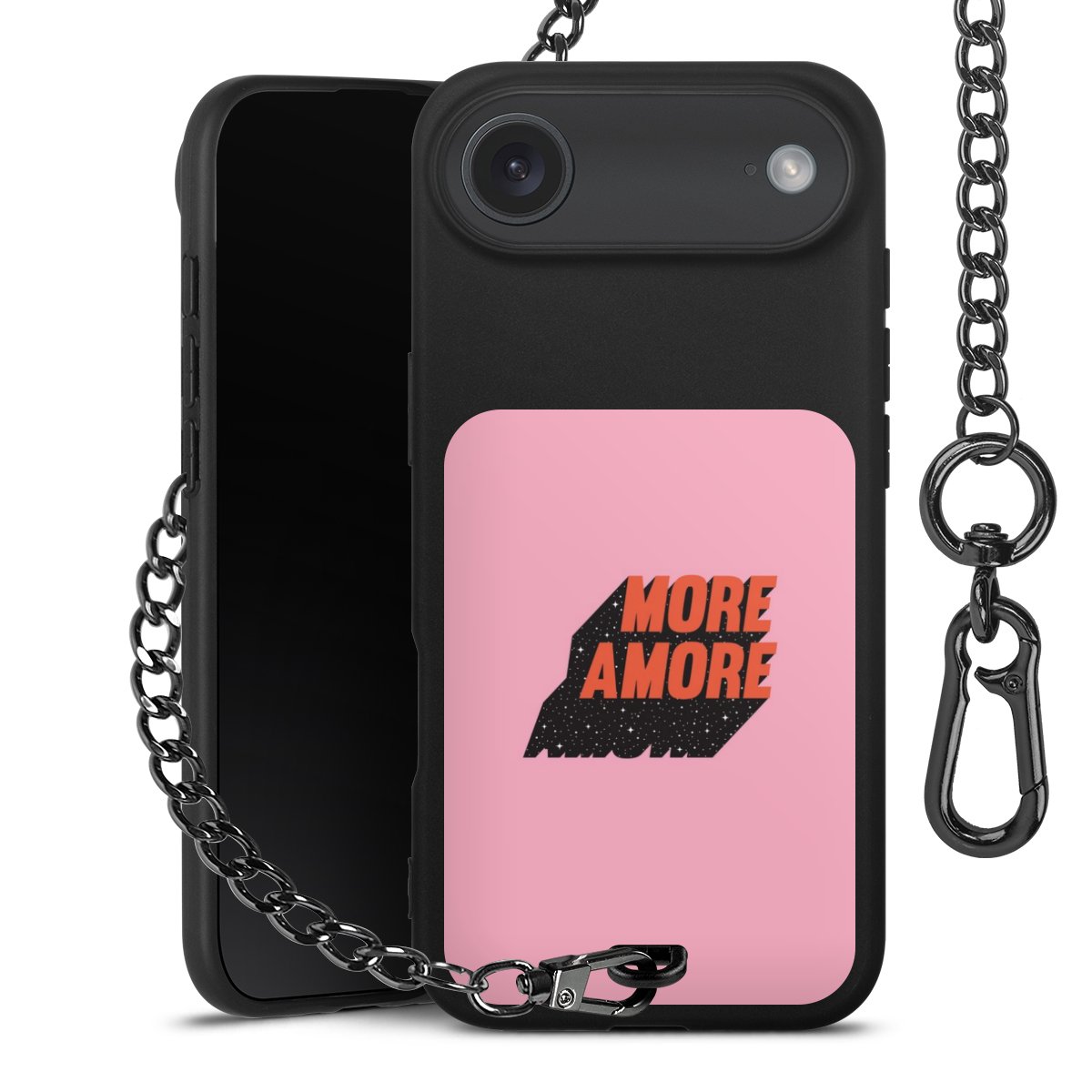 • Mattschwarze Handyhülle mit Metallkette