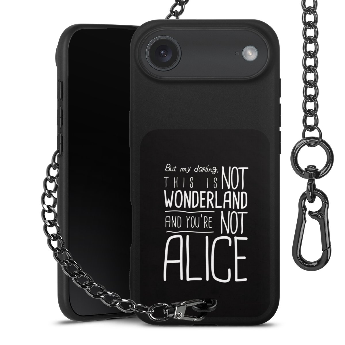 • Mattschwarze Handyhülle mit Metallkette