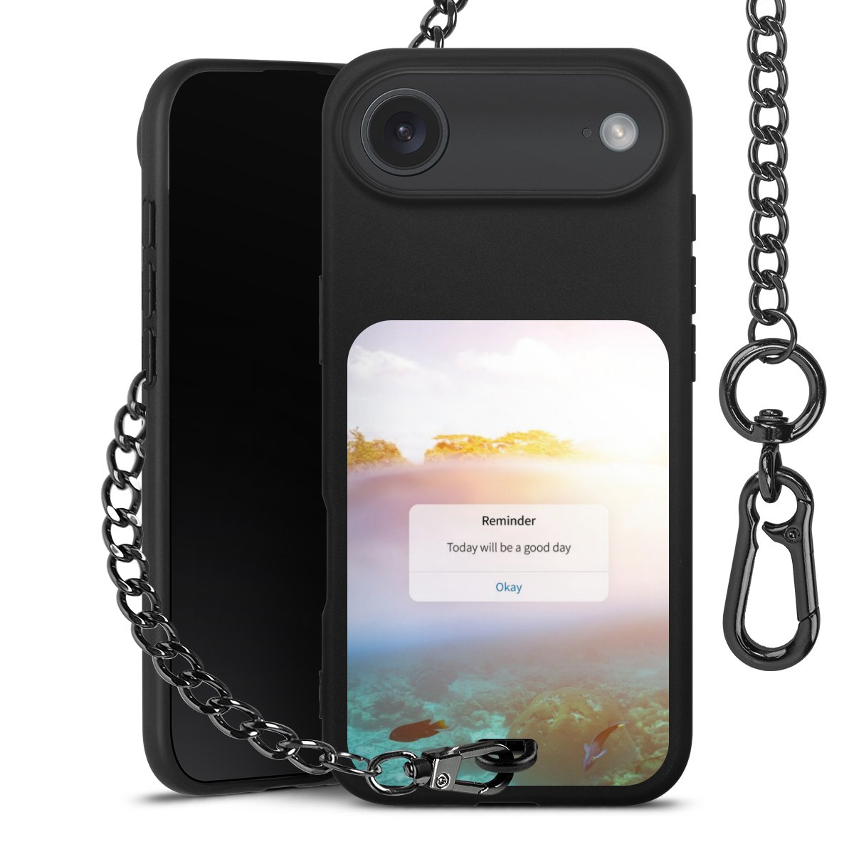• Mattschwarze Handyhülle mit Metallkette