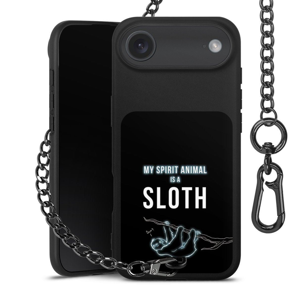 - Mattschwarze Handyhülle mit Metallkette