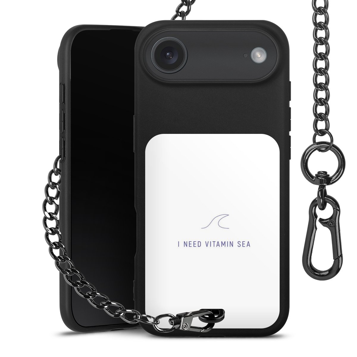 • Mattschwarze Handyhülle mit Metallkette