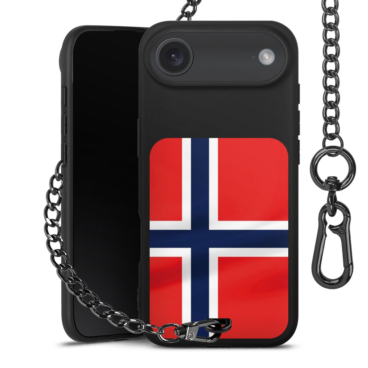 • Mattschwarze Handyhülle mit Metallkette
