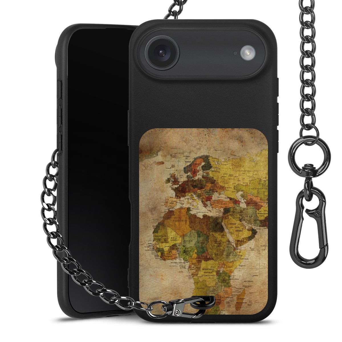 - Mattschwarze Handyhülle mit Metallkette