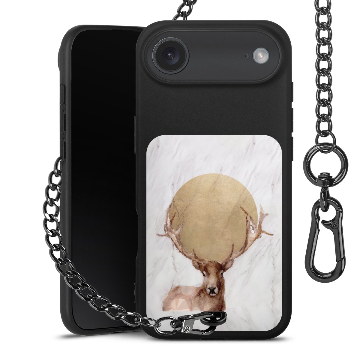 • Mattschwarze Handyhülle mit Metallkette