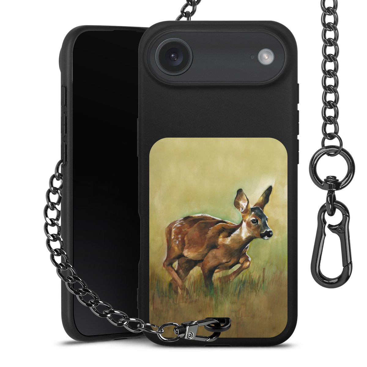 • Mattschwarze Handyhülle mit Metallkette