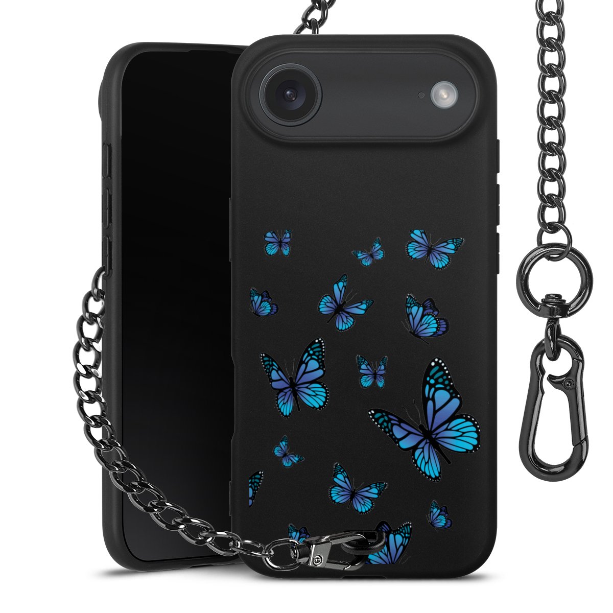 - Mattschwarze Handyhülle mit Metallkette