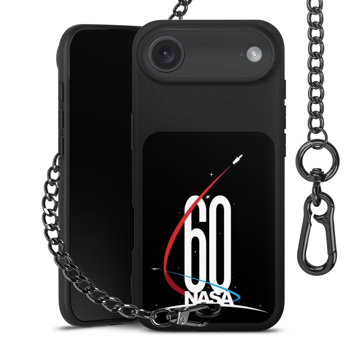 - Mattschwarze Handyhülle mit Metallkette
