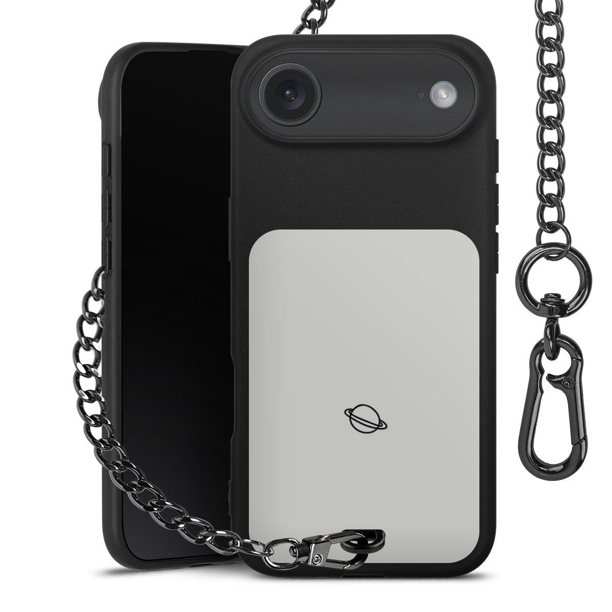 • Mattschwarze Handyhülle mit Metallkette
