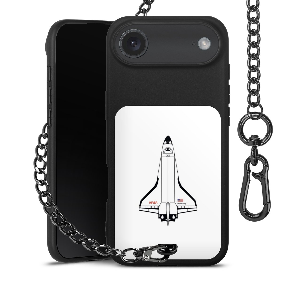 - Mattschwarze Handyhülle mit Metallkette