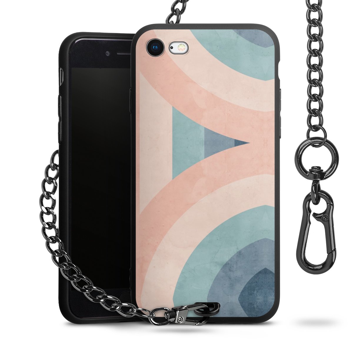 • Mattschwarze Handyhülle mit Metallkette