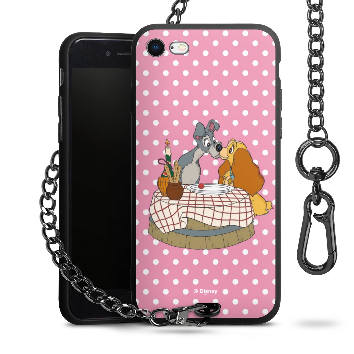 Die Handyhülle verfügt über eine mittig am unteren Rand platzierte Öse, an der die Metallkette stabil befestigt ist. Bestelle die Hülle einfach für Dein Smartphone-Modell, dann passt sie wie angegossen und Du brauchst sie bloß einmal anzudrücken. Handy in die Tasche, Karabiner an den Hosenbund – schon kann die Party starten.