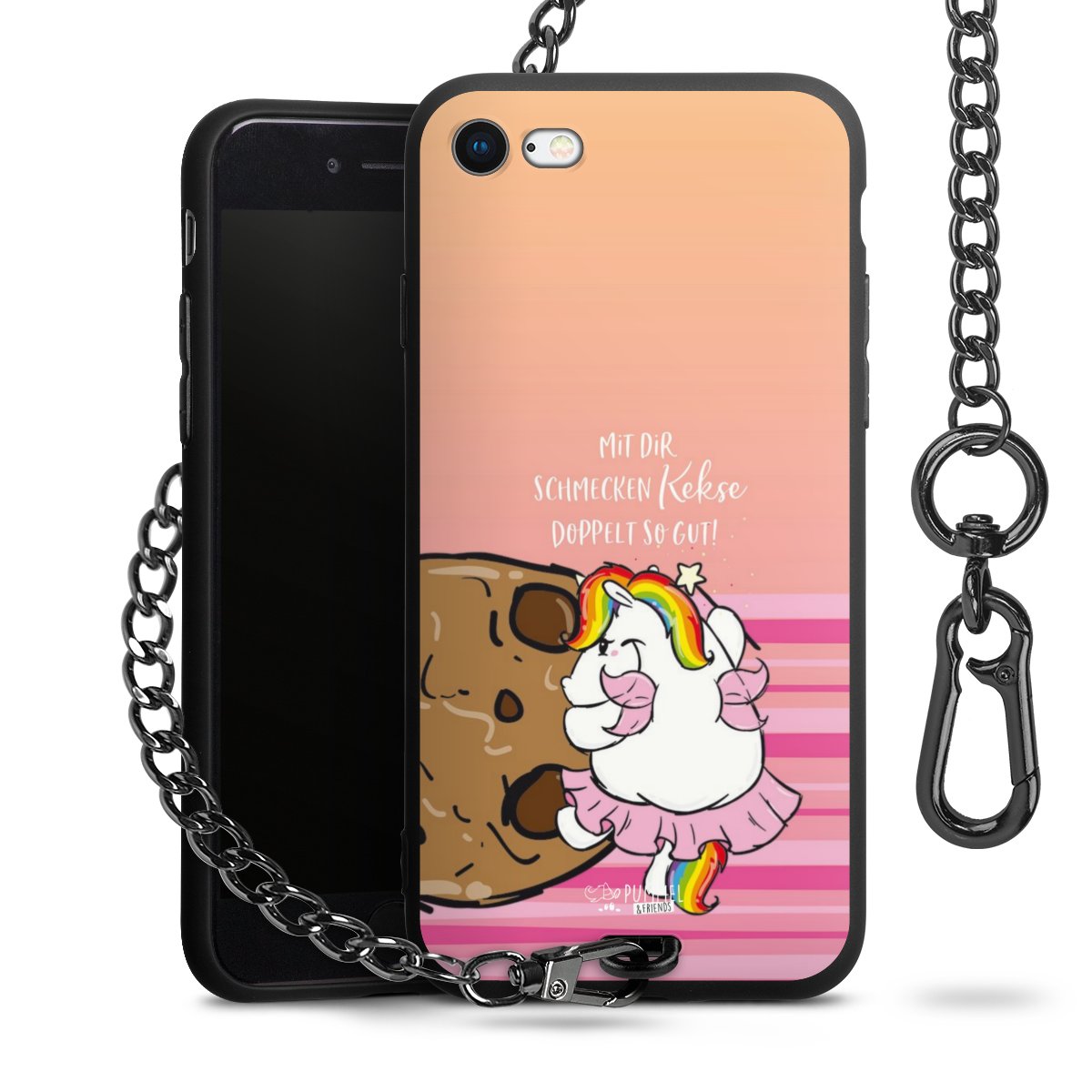 Die mattschwarze Silikon-Handyhülle besteht aus robustem TPU (thermoplastisches Polyurethan). Sie ist flexibel und schützt Dein Smartphone vor Stößen und Kratzern. Die Kette sowie der Karabinerhaken sind aus Metall in Gunmetal-Optik gefertigt. Für dieses Produkt kommen ausschließlich TÜV-geprüfte Materialien zum Einsatz.