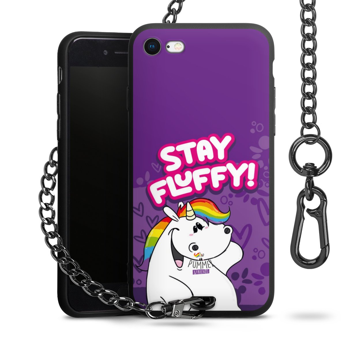 Die mattschwarze Silikon-Handyhülle besteht aus robustem TPU (thermoplastisches Polyurethan). Sie ist flexibel und schützt Dein Smartphone vor Stößen und Kratzern. Die Kette sowie der Karabinerhaken sind aus Metall in Gunmetal-Optik gefertigt. Für dieses Produkt kommen ausschließlich TÜV-geprüfte Materialien zum Einsatz.