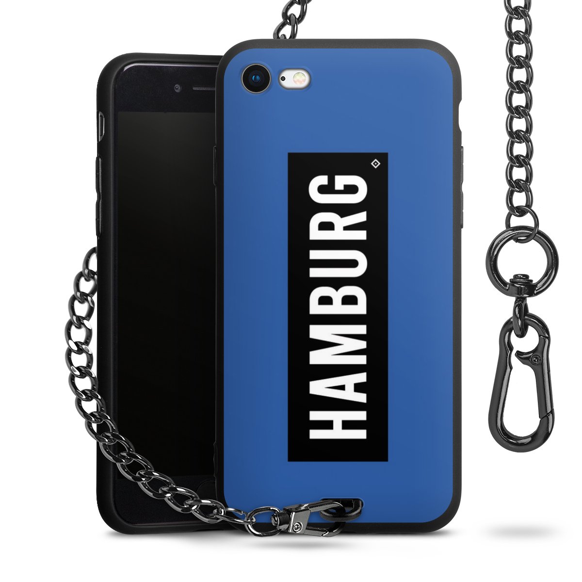 Die mattschwarze Silikon-Handyhülle besteht aus robustem TPU (thermoplastisches Polyurethan). Sie ist flexibel und schützt Dein Smartphone vor Stößen und Kratzern. Die Kette sowie der Karabinerhaken sind aus Metall in Gunmetal-Optik gefertigt. Für dieses Produkt kommen ausschließlich TÜV-geprüfte Materialien zum Einsatz.
