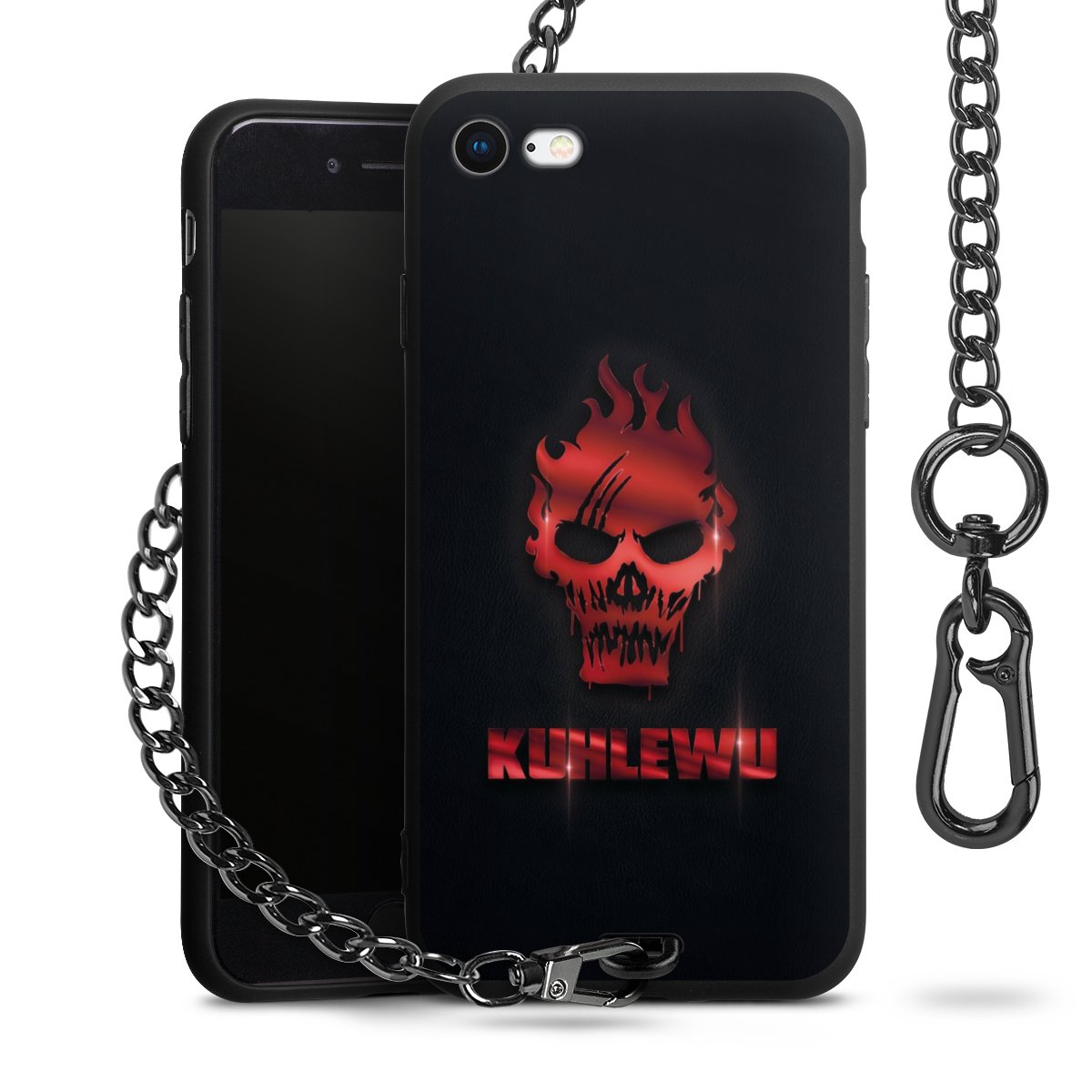 Die mattschwarze Silikon-Handyhülle besteht aus robustem TPU (thermoplastisches Polyurethan). Sie ist flexibel und schützt Dein Smartphone vor Stößen und Kratzern. Die Kette sowie der Karabinerhaken sind aus Metall in Gunmetal-Optik gefertigt. Für dieses Produkt kommen ausschließlich TÜV-geprüfte Materialien zum Einsatz.