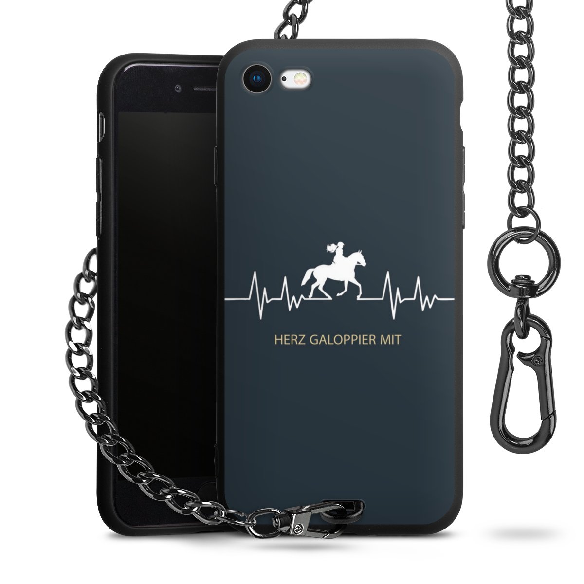 Die mattschwarze Silikon-Handyhülle besteht aus robustem TPU (thermoplastisches Polyurethan). Sie ist flexibel und schützt Dein Smartphone vor Stößen und Kratzern. Die Kette sowie der Karabinerhaken sind aus Metall in Gunmetal-Optik gefertigt. Für dieses Produkt kommen ausschließlich TÜV-geprüfte Materialien zum Einsatz.