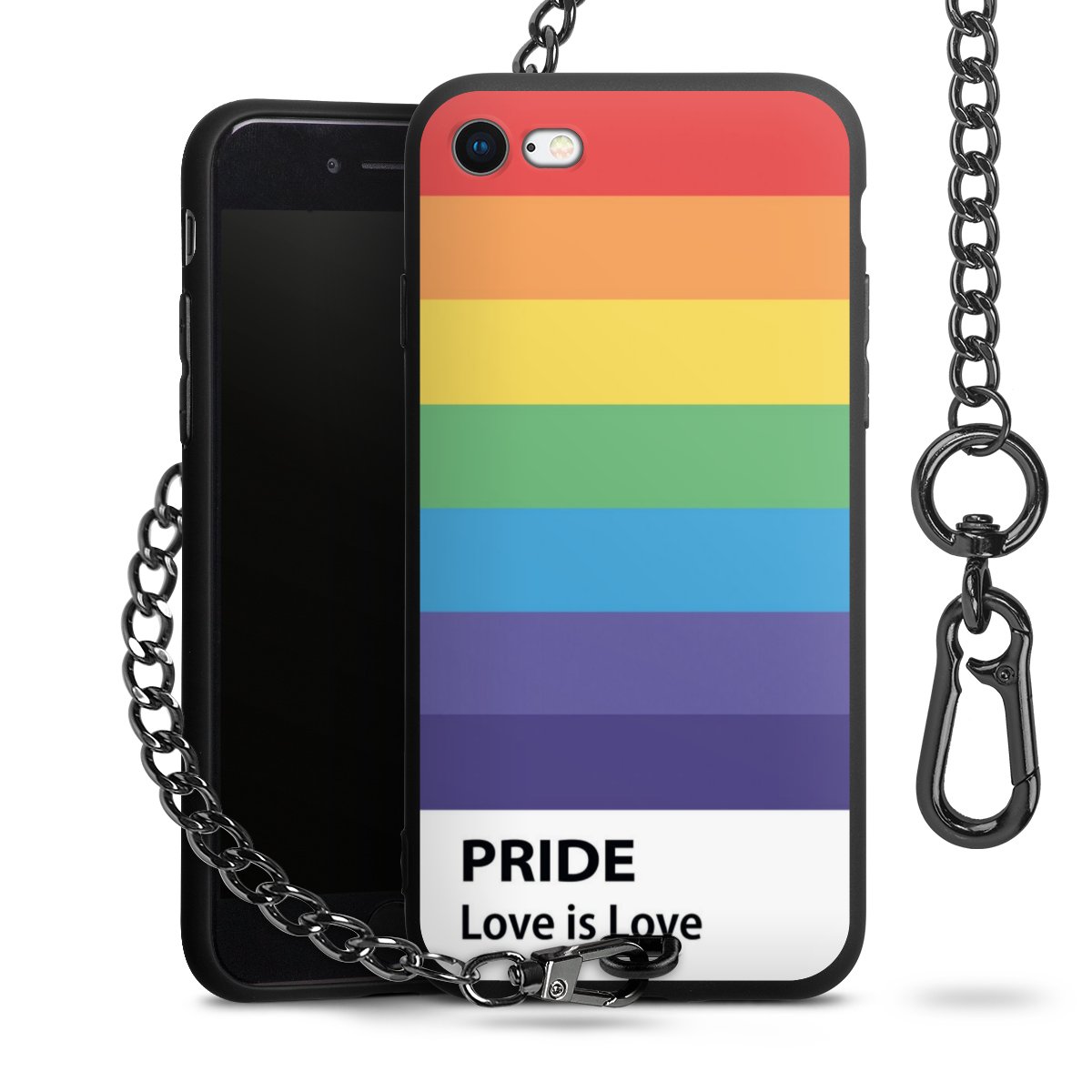 Die mattschwarze Silikon-Handyhülle besteht aus robustem TPU (thermoplastisches Polyurethan). Sie ist flexibel und schützt Dein Smartphone vor Stößen und Kratzern. Die Kette sowie der Karabinerhaken sind aus Metall in Gunmetal-Optik gefertigt. Für dieses Produkt kommen ausschließlich TÜV-geprüfte Materialien zum Einsatz.