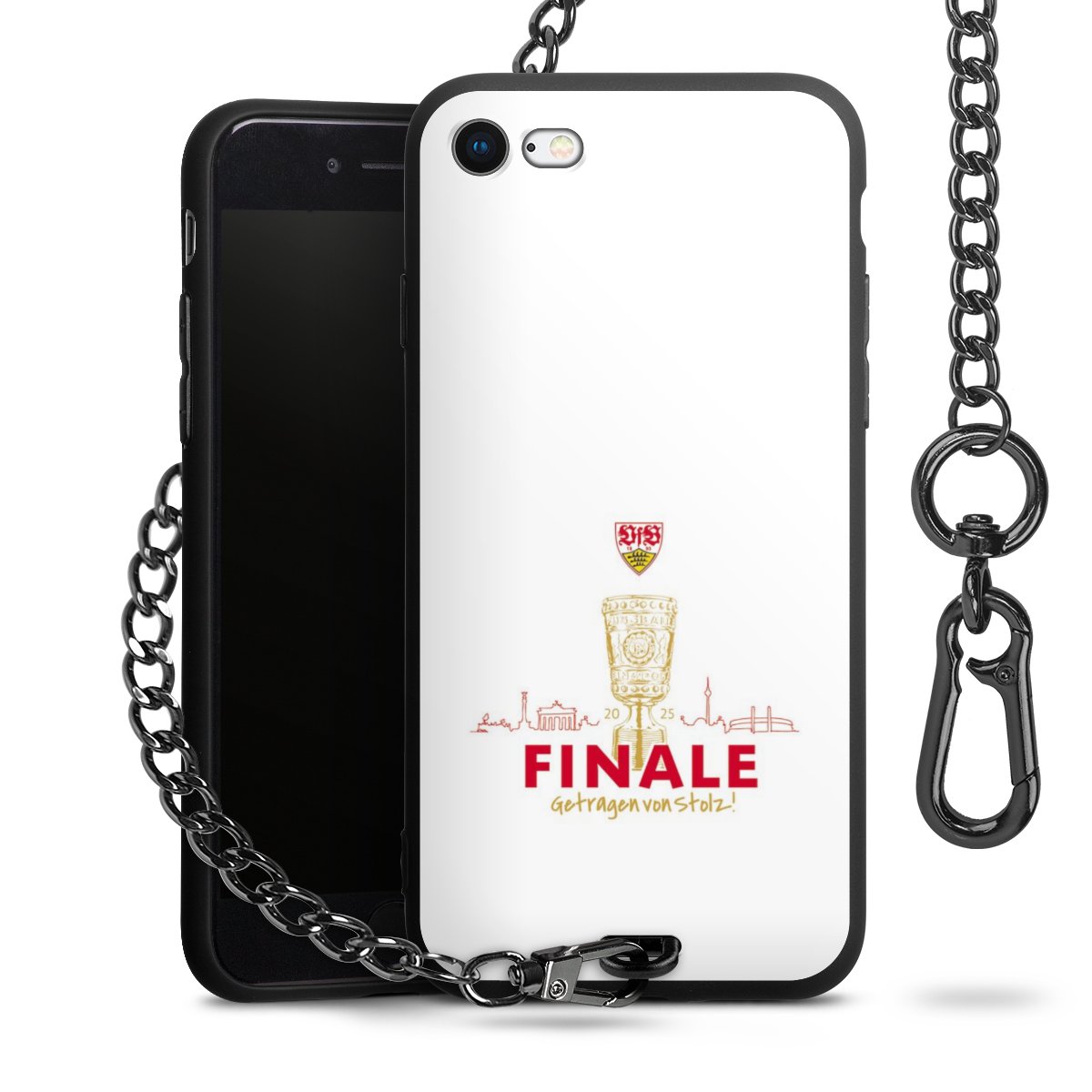 Die mattschwarze Silikon-Handyhülle besteht aus robustem TPU (thermoplastisches Polyurethan). Sie ist flexibel und schützt Dein Smartphone vor Stößen und Kratzern. Die Kette sowie der Karabinerhaken sind aus Metall in Gunmetal-Optik gefertigt. Für dieses Produkt kommen ausschließlich TÜV-geprüfte Materialien zum Einsatz.