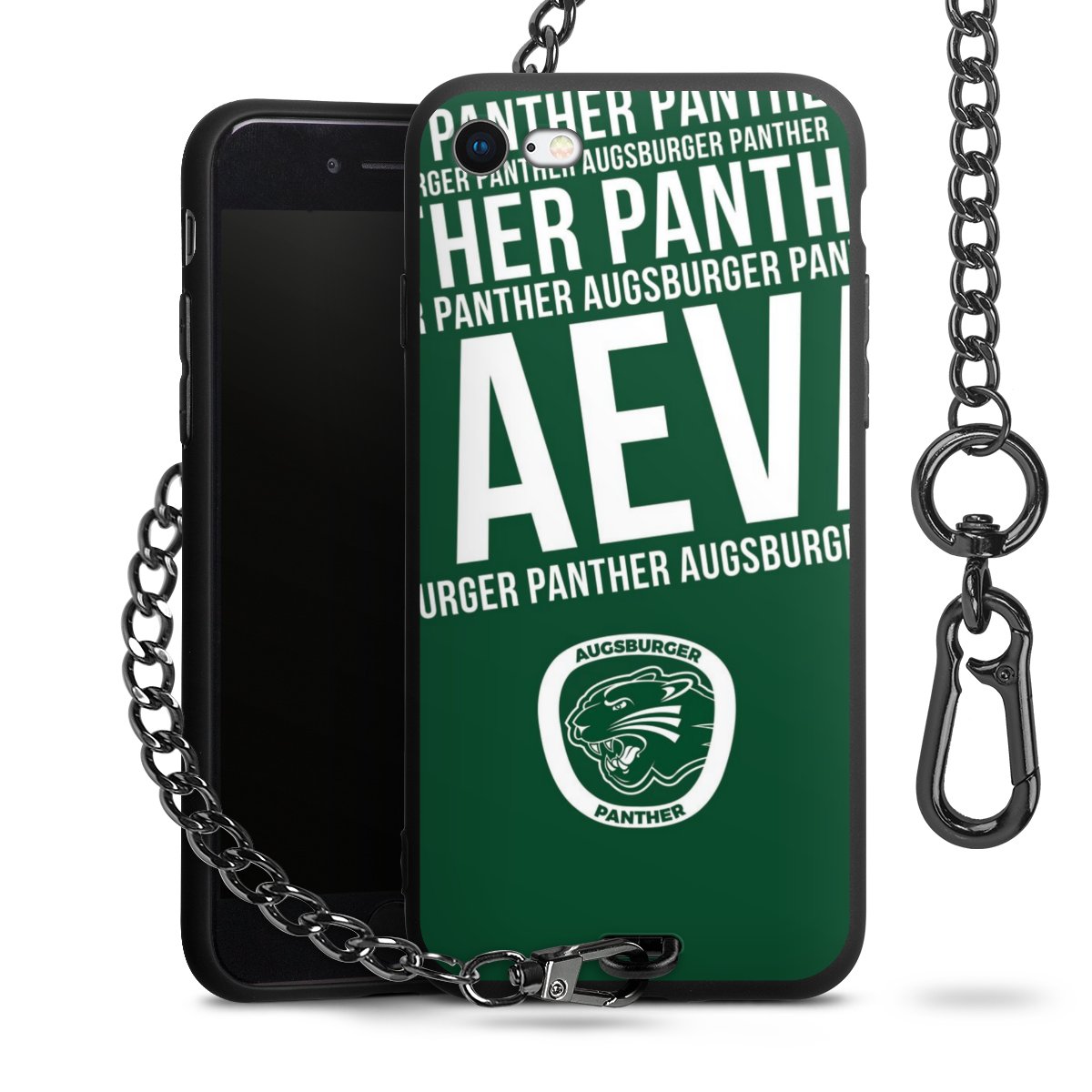 Die mattschwarze Silikon-Handyhülle besteht aus robustem TPU (thermoplastisches Polyurethan). Sie ist flexibel und schützt Dein Smartphone vor Stößen und Kratzern. Die Kette sowie der Karabinerhaken sind aus Metall in Gunmetal-Optik gefertigt. Für dieses Produkt kommen ausschließlich TÜV-geprüfte Materialien zum Einsatz.