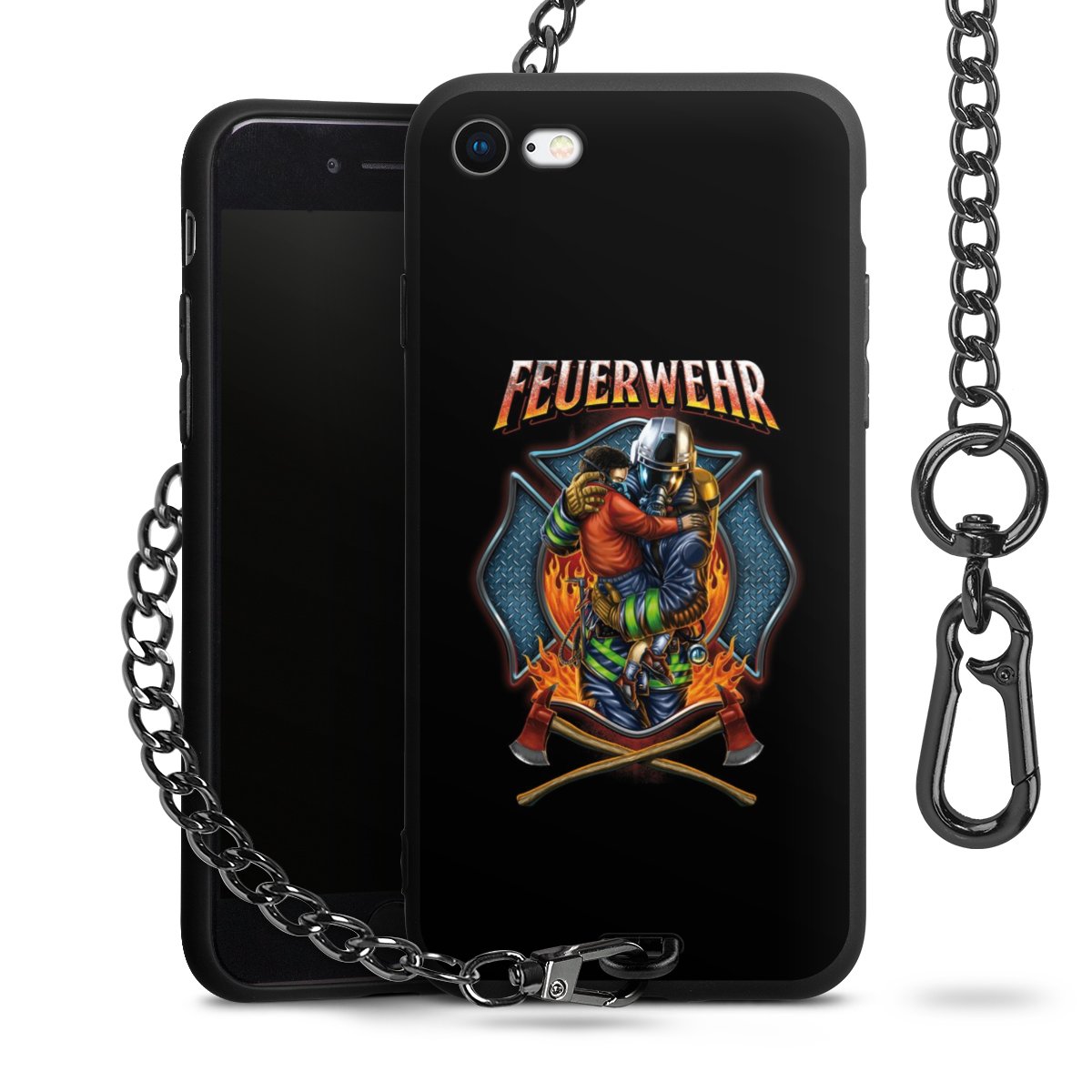 • Mattschwarze Handyhülle mit Metallkette