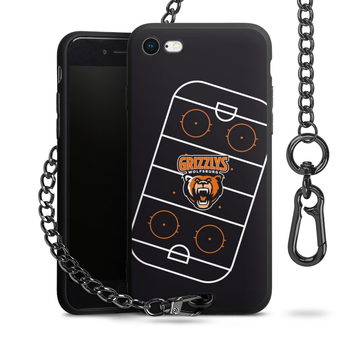 Die mattschwarze Silikon-Handyhülle besteht aus robustem TPU (thermoplastisches Polyurethan). Sie ist flexibel und schützt Dein Smartphone vor Stößen und Kratzern. Die Kette sowie der Karabinerhaken sind aus Metall in Gunmetal-Optik gefertigt. Für dieses Produkt kommen ausschließlich TÜV-geprüfte Materialien zum Einsatz.