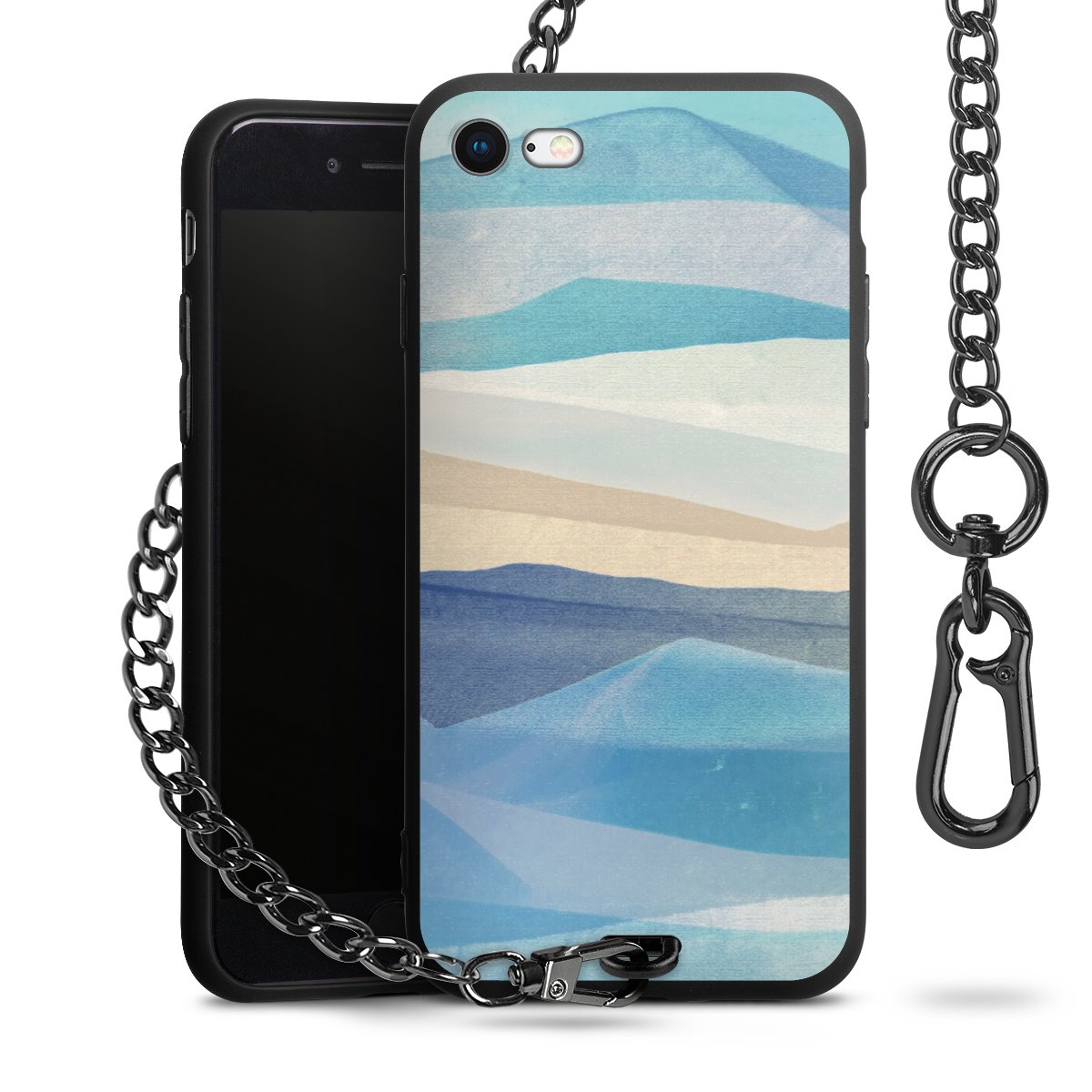 Die mattschwarze Silikon-Handyhülle besteht aus robustem TPU (thermoplastisches Polyurethan). Sie ist flexibel und schützt Dein Smartphone vor Stößen und Kratzern. Die Kette sowie der Karabinerhaken sind aus Metall in Gunmetal-Optik gefertigt. Für dieses Produkt kommen ausschließlich TÜV-geprüfte Materialien zum Einsatz.