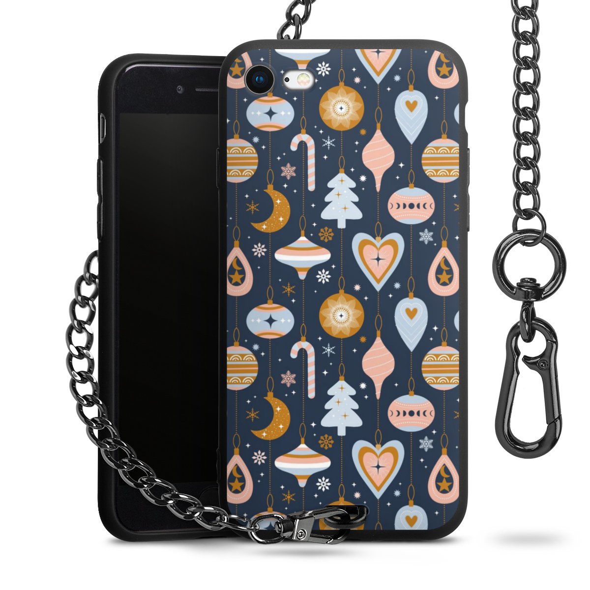 • Mattschwarze Handyhülle mit Metallkette