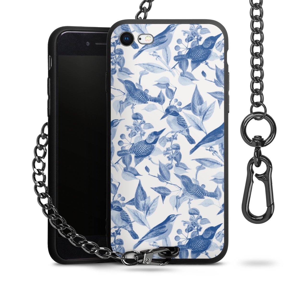 • Mattschwarze Handyhülle mit Metallkette