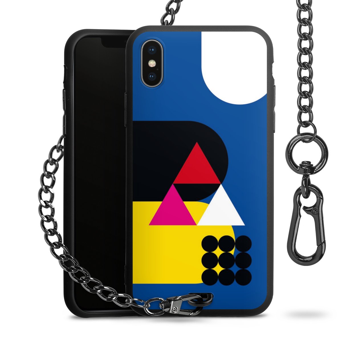 - Mattschwarze Handyhülle mit Metallkette