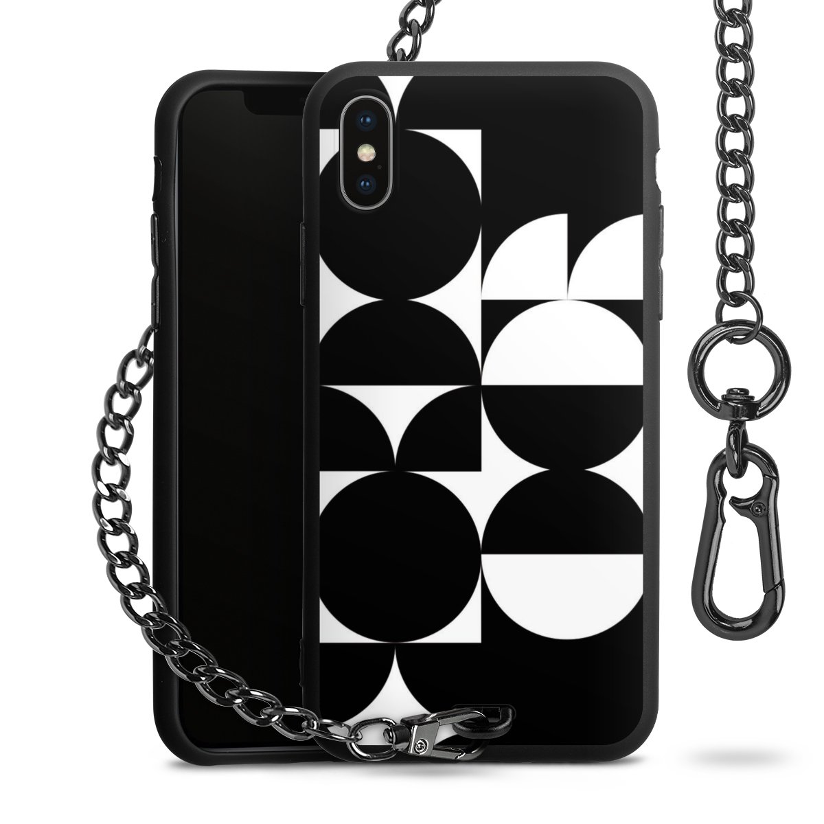 - Mattschwarze Handyhülle mit Metallkette