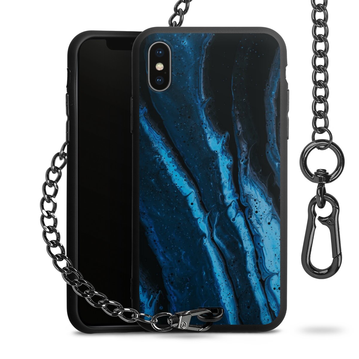 - Mattschwarze Handyhülle mit Metallkette
