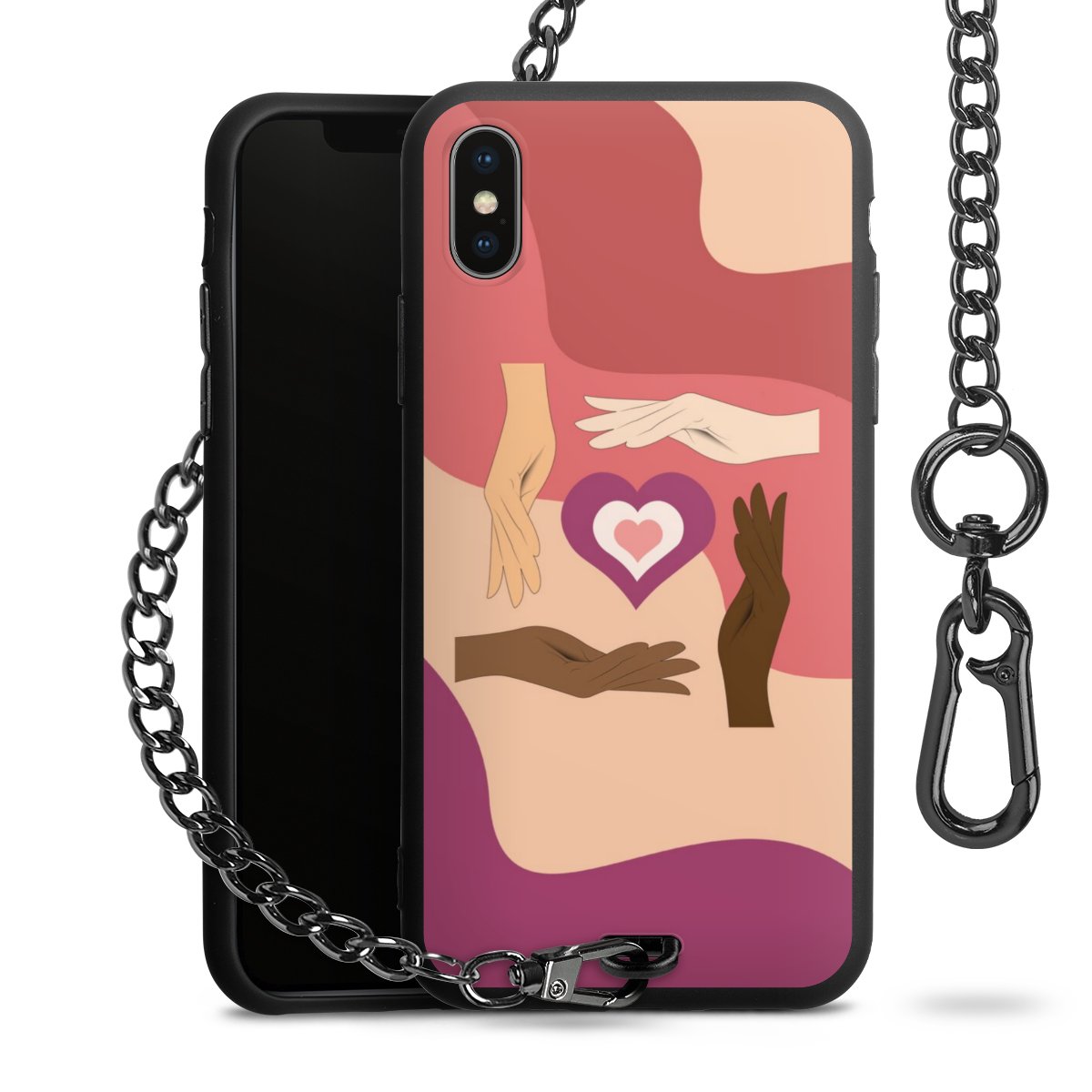 - Mattschwarze Handyhülle mit Metallkette