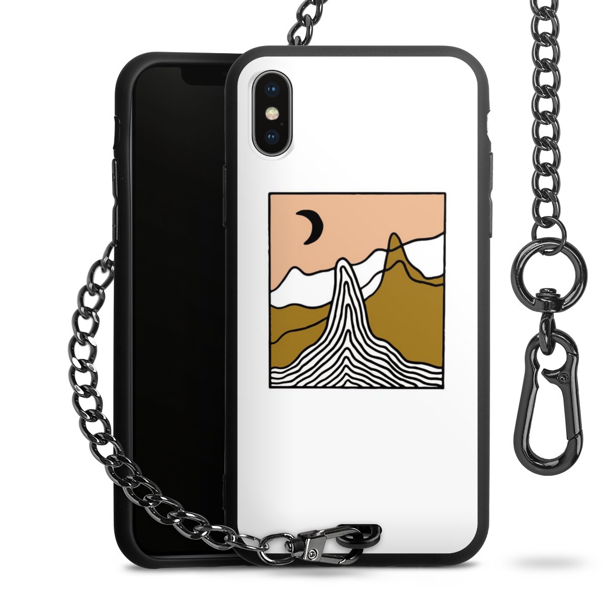 - Mattschwarze Handyhülle mit Metallkette