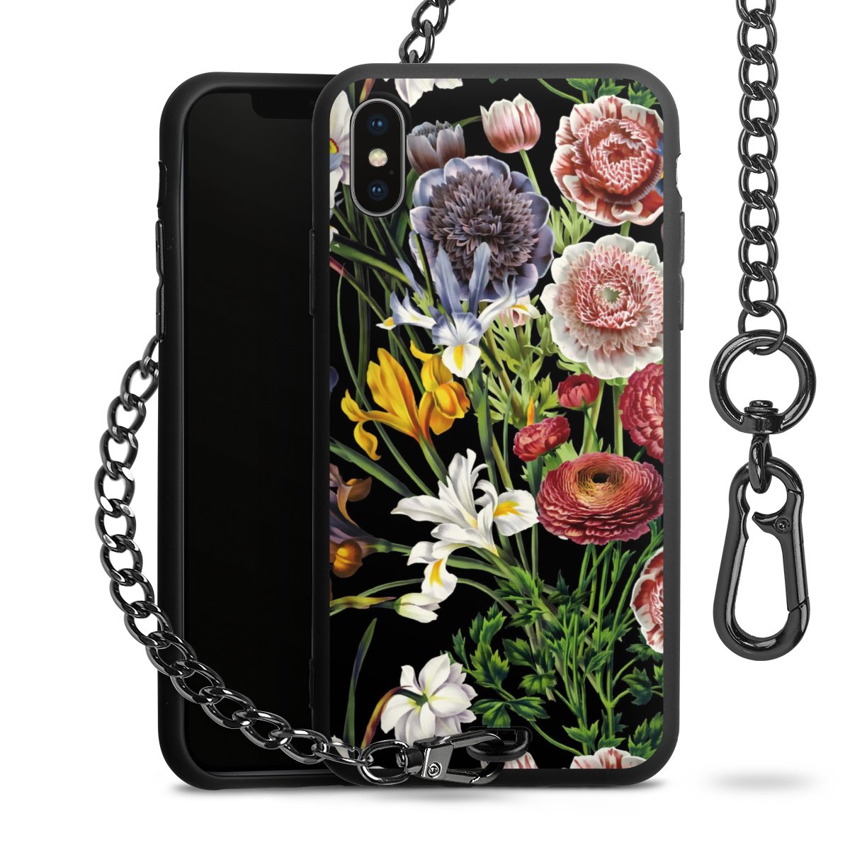 • Mattschwarze Handyhülle mit Metallkette
