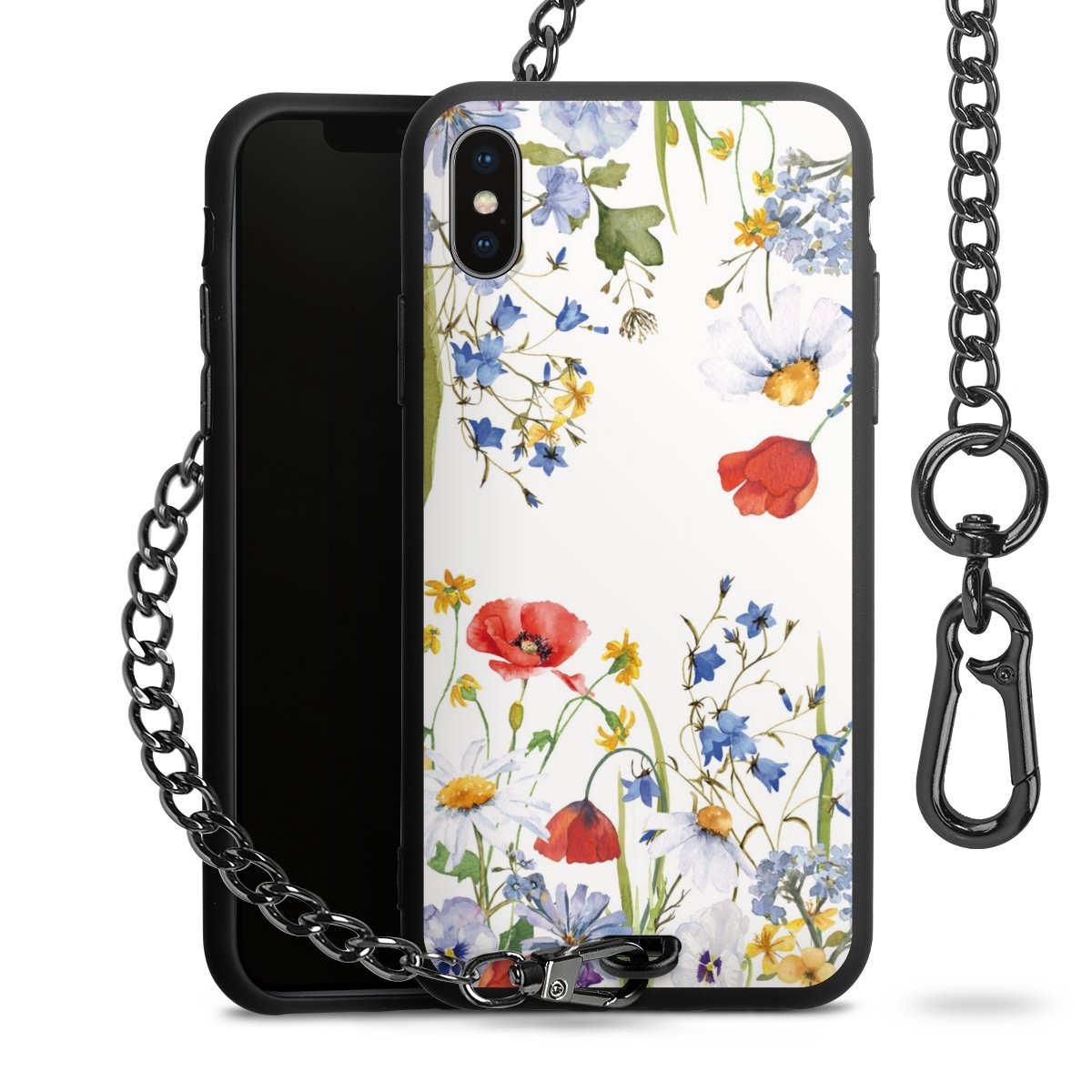 • Mattschwarze Handyhülle mit Metallkette