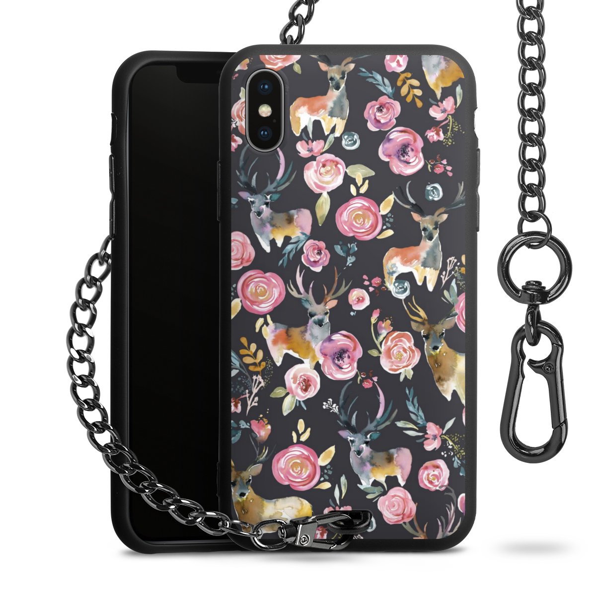 • Mattschwarze Handyhülle mit Metallkette