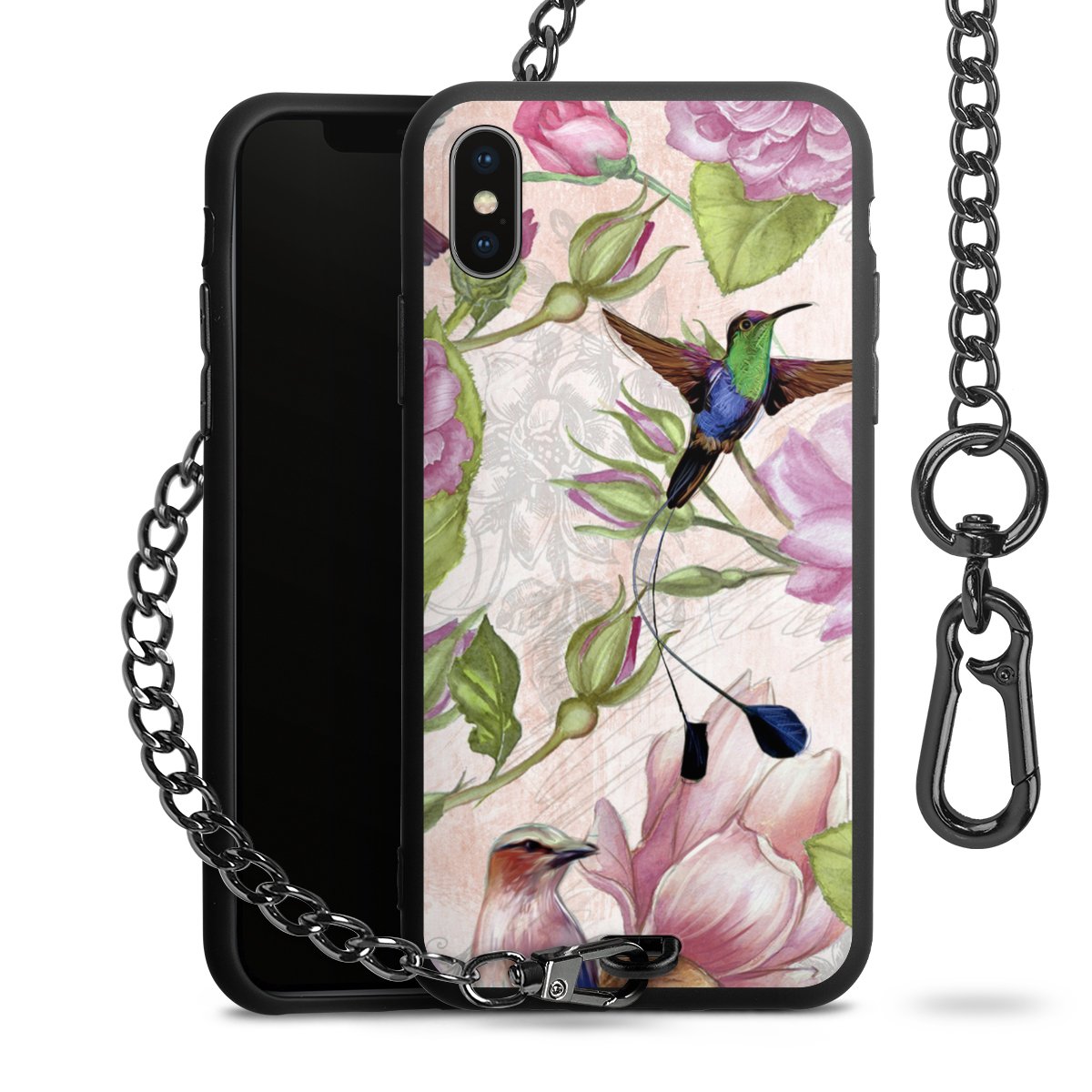 • Mattschwarze Handyhülle mit Metallkette