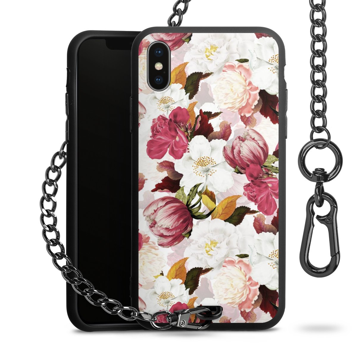 • Mattschwarze Handyhülle mit Metallkette